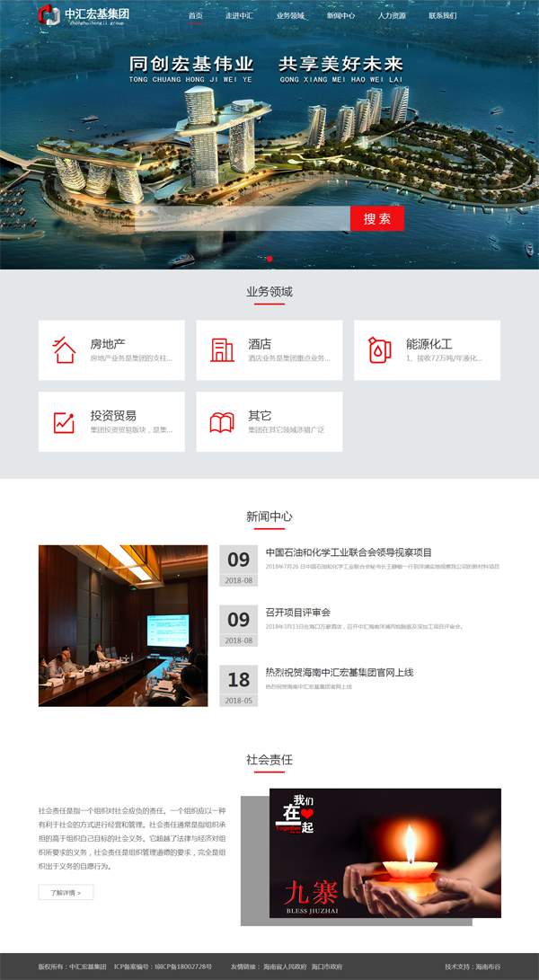 在中國城鎮化建設進程中,我們中匯宏基集團抓住有利時機進軍海南,參與海南省重點項目的投資建設。海南國際旅游島建設和得天獨厚的自然生態環境是我們公司發展的巨大機遇,通過現代企業組織體系的建立,引進先進的管理理念,增強企業競爭能力。椰風暖人,海闊天空。在中國城鎮化建設進程中,我們中匯宏基集團抓住有利時機進軍海南,參與海南省重點項目的投資建設。海南國際旅游島建設和得天獨厚的自然生態環境是我們公司發展的巨大機遇,通過現代企業組織體系的建立,引進先進的管理理念,增強企業競爭能力。同時,在全球范圍內積極尋求戰略合作伙伴,與相關行業的領頭企業結成戰略聯盟,在目標產業領域實施國際化戰略,實現以房地產開發、酒店和石油保稅儲運為主導產業的發展方向。