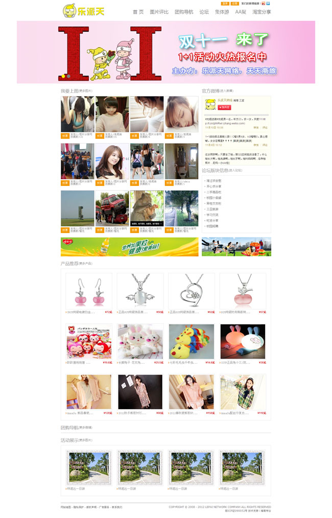 案例背景:樂派天網絡,三亞大學城大的線上交流平臺,提供圖片交流分享,淘寶交流分享,各種論壇版塊。從線上到線下提供吃喝玩樂,學習,工作等全方位立體式服務。