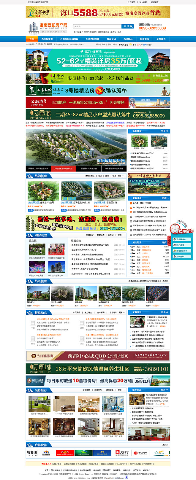 海南西部房產網于2012年建設至今,期間以符合網友的閱讀特點出發,并以數據 更透明、內容更精彩為主,經過多次改版,網站流量、訪問人數一直處于上升趨勢。特別是2013年推出購房解決方案(看房團)以來,網站知名度大大上升。隨后推出每周海南省新房成交報告、每月海南新房(二手房)市場成交數據成交報告,吸引廣大網友及業內的高度關注;其他欄目如特價活動、開盤預告、樣板房鑒賞、市場解讀等一直是網站的重點推廣項目。