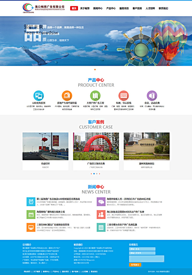 案例背景:海口暢想廣告有限公司自成立以來(lái),一直致力于戶(hù)外廣告行業(yè),多年來(lái)時(shí)時(shí)洞察市場(chǎng)需求,不斷將產(chǎn)品改進(jìn)升級(jí).現(xiàn)已發(fā)展成具有一定規(guī)模,集LED戶(hù)外光電工程、LED顯屏、LED戶(hù)外大型發(fā)光字工程、大型專(zhuān)業(yè)戶(hù)外廣告制作、專(zhuān)業(yè)房地產(chǎn)終端推廣包裝、戶(hù)內(nèi)外噴畫(huà)、吸塑雕刻、策劃設(shè)計(jì)、活動(dòng)慶典、會(huì)場(chǎng)布置等為一體的綜合性現(xiàn)代廣告制作公司。