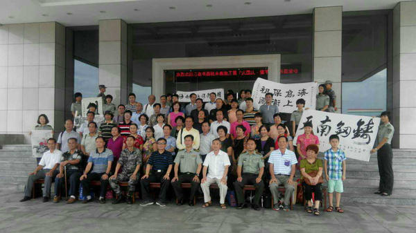 早上八點,萬泉河書畫社組織的書畫家一行五十多人,在省政務中心乘坐部隊的接送車浩浩蕩蕩的開啟了這次大型書畫進軍營活動。